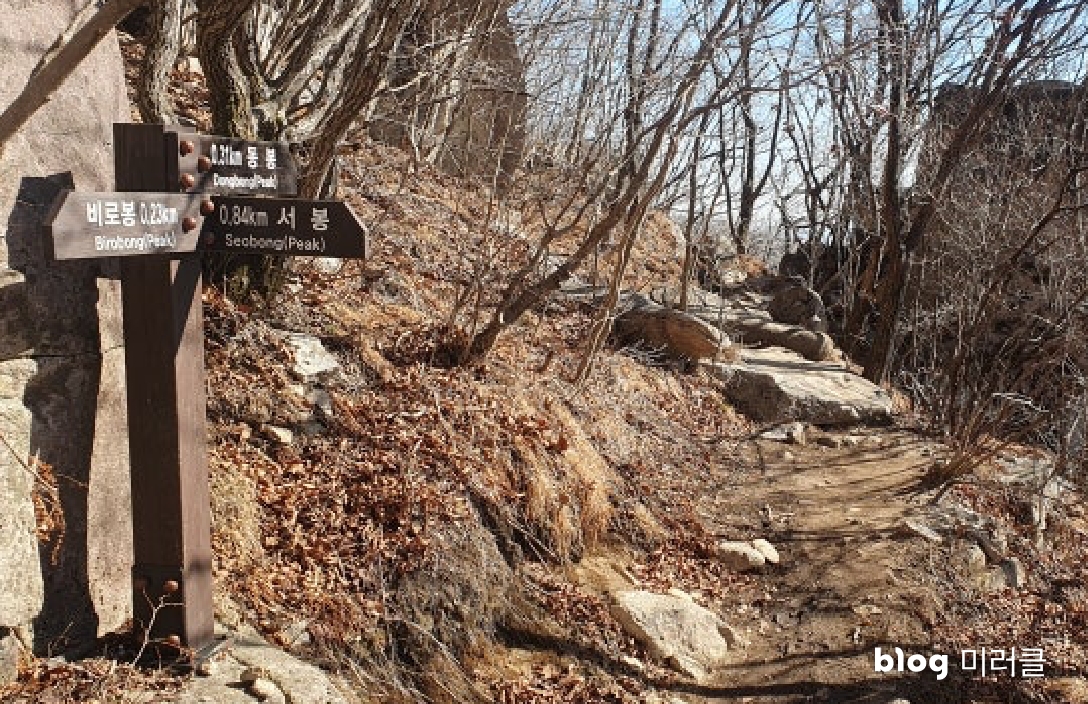 이정표의 비로봉/동봉 방향으로 가세요. 이후부터 오르막이 계속돼요.