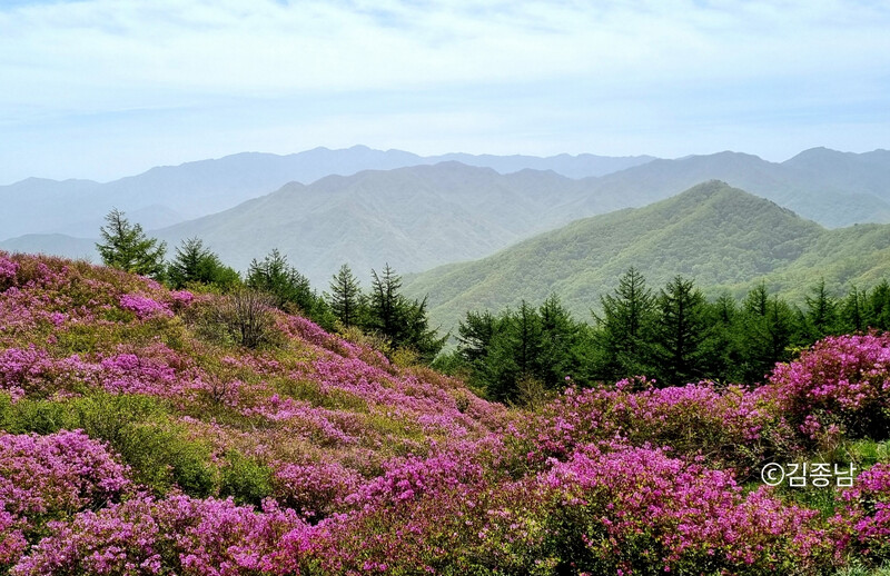 봄이 되면 철쭉으로 가득하고, 겨울에는 눈꽃 산행 코스로도 유명해요.